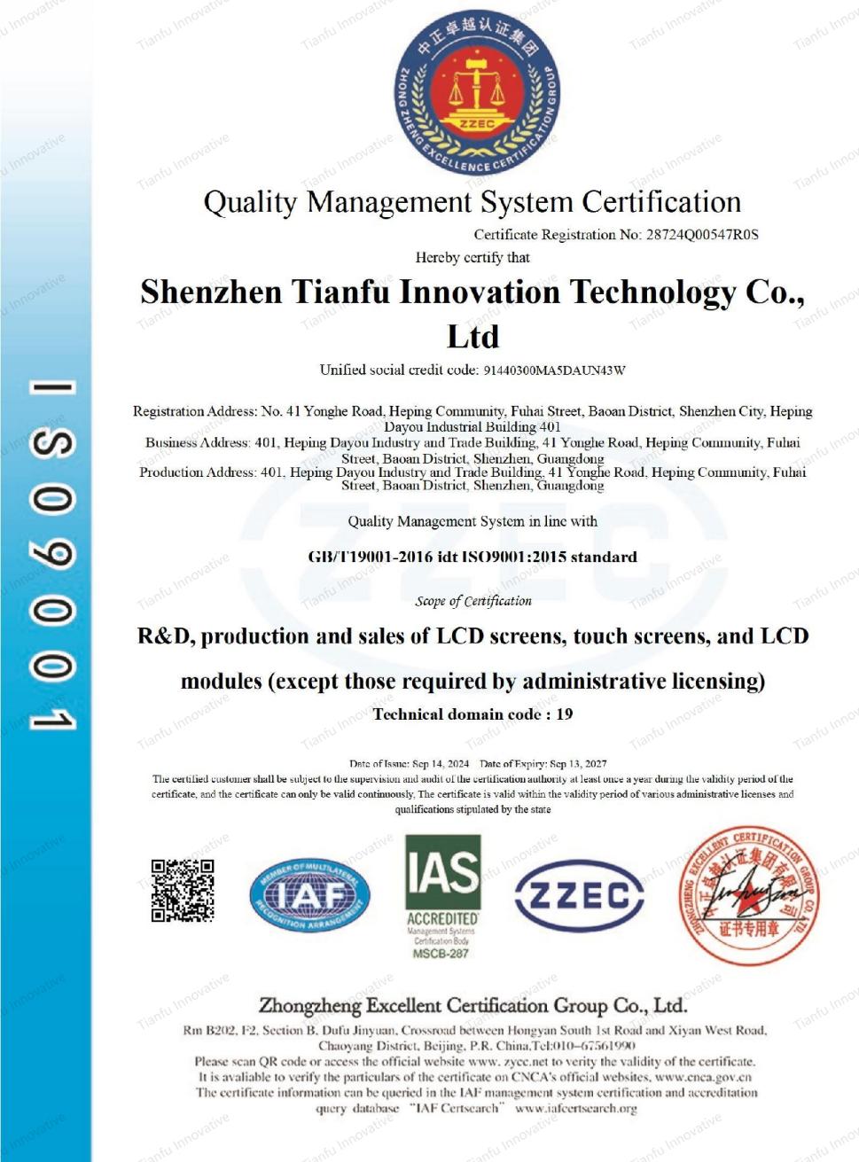 · التصنيع حاصل على شهادة الأيزو 9001.