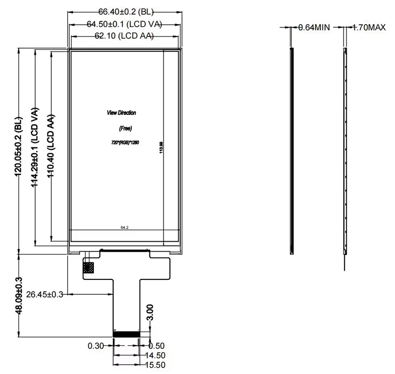 رفع التأثير المرئي لجهازك مع وحدة شاشة اللمس السعودية عالية السطوع الخاصة بك 5.0 TFT: إنها مثالية للأجهزة الذكية أو الأجهزة القابلة للارتداء أو تطبيقات السيارات ، حيث أن دقة 720 × 1920 تلبي زوايا المشاهدة الكاملة (178 درجة) ، مع 300 درجة مئوية/م² ، حتى في ظل أشعة الشمس المباشرة ؛ 1.85 مم ملف تعريف و 66.40x120.05x1.85mm.